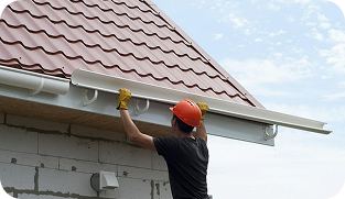 Reiniging, reparatie of vervanging van dakgoten en afvoeren zodat water correct wordt afgevoerd.